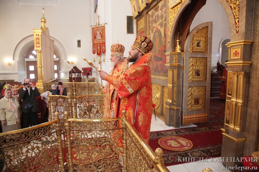 В среду Светлой седмицы Преосвященный Софроний, епископ Кинельский и Безенчукский, сослужил за Божественной литургией митрополиту Самарскому и Сызранскому Сергию в Преображенском соборе г. Тольятти.