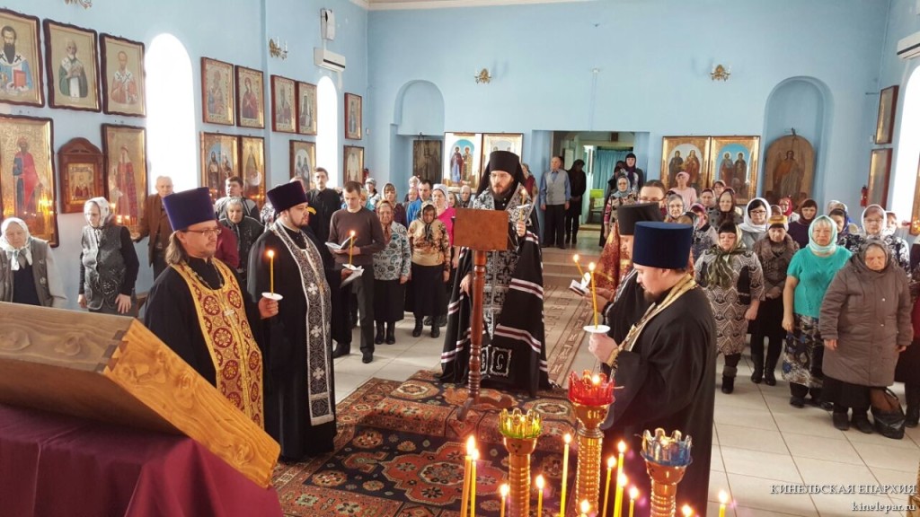 В среду первой седмицы Великого поста Преосвященный Софроний, епископ Кинельский и Безенчукский, совершил великое повечерие с чтением Великого покаянного канона прп. Андрея Критского в храме во имя Архистратига Михаила пгт Усть-Кинельский г.о. Кинель.