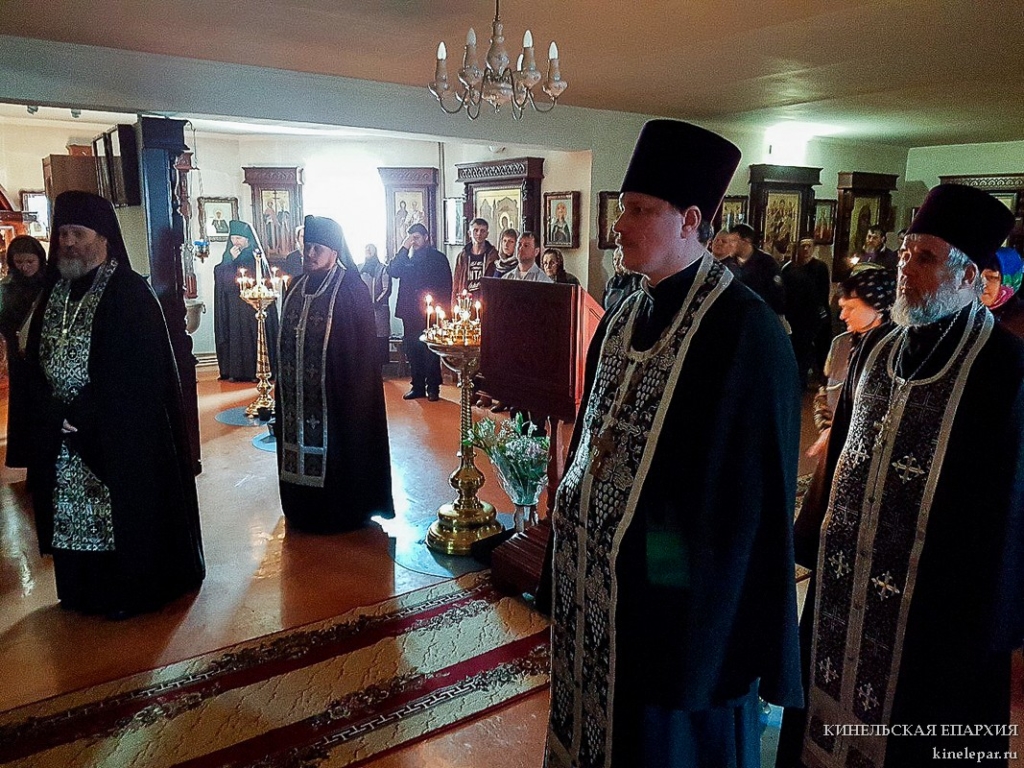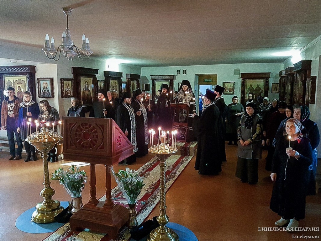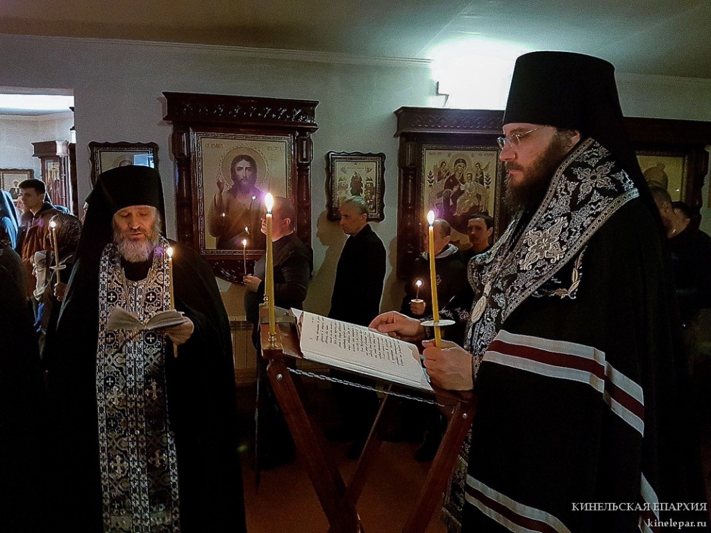 В среду первой седмицы Великого поста Преосвященный Софроний, епископ Кинельский и Безенчукский, совершил великое повечерие с чтением Великого покаянного канона прп. Андрея Критского в Покровском монастыре с. Чубовка.