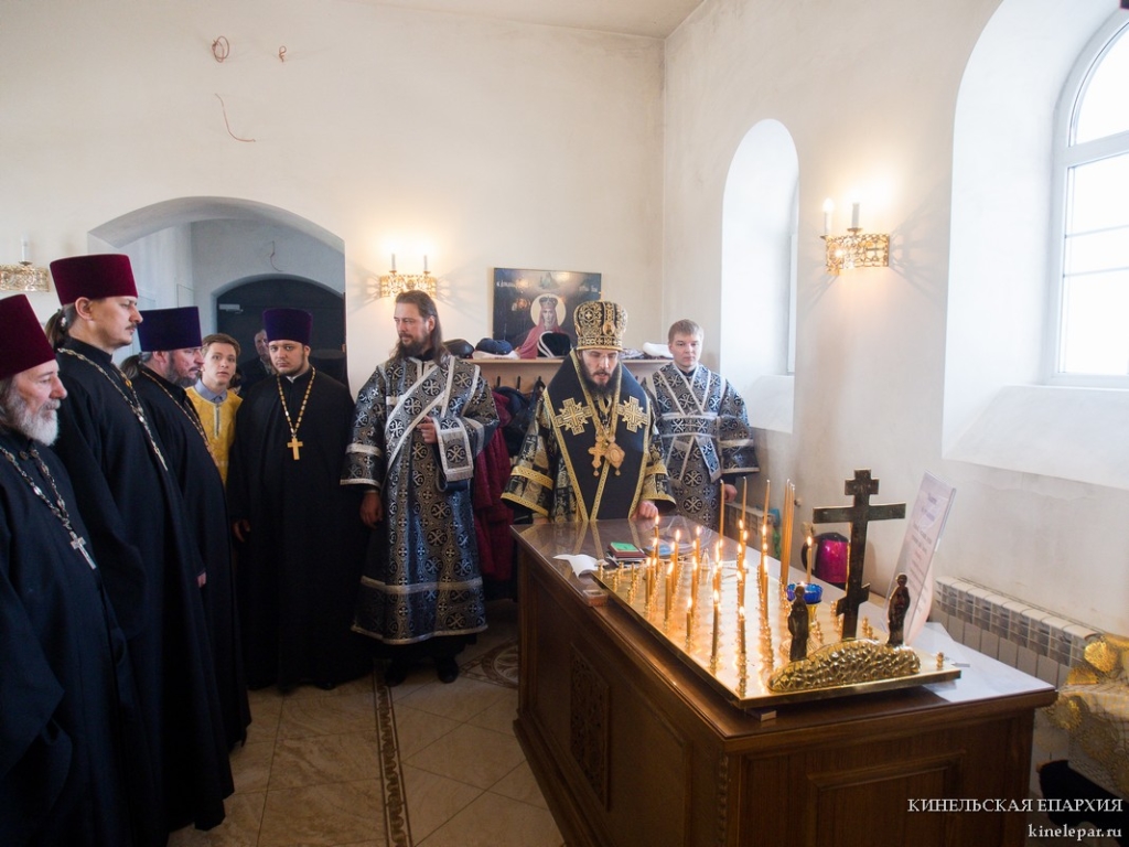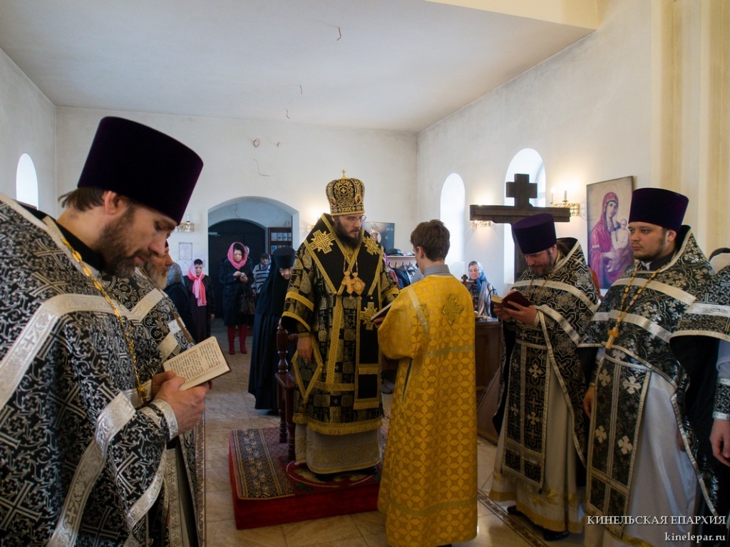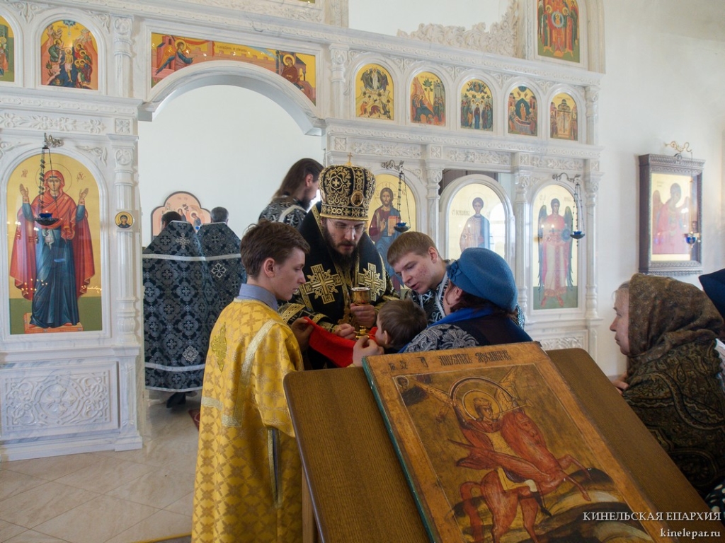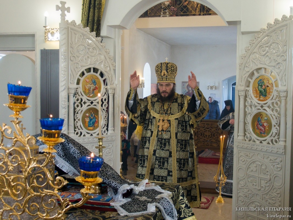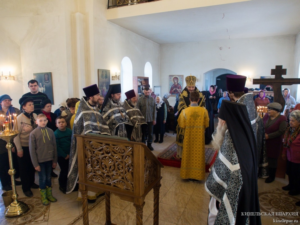 В пятницу пятой седмицы Великого поста Преосвященный Софроний, епископ Кинельский и Безенчукский, совершил Литургию Преждеосвященных Даров в храме во имя Архистратига Божия Михаила г.о. Чапаевск.