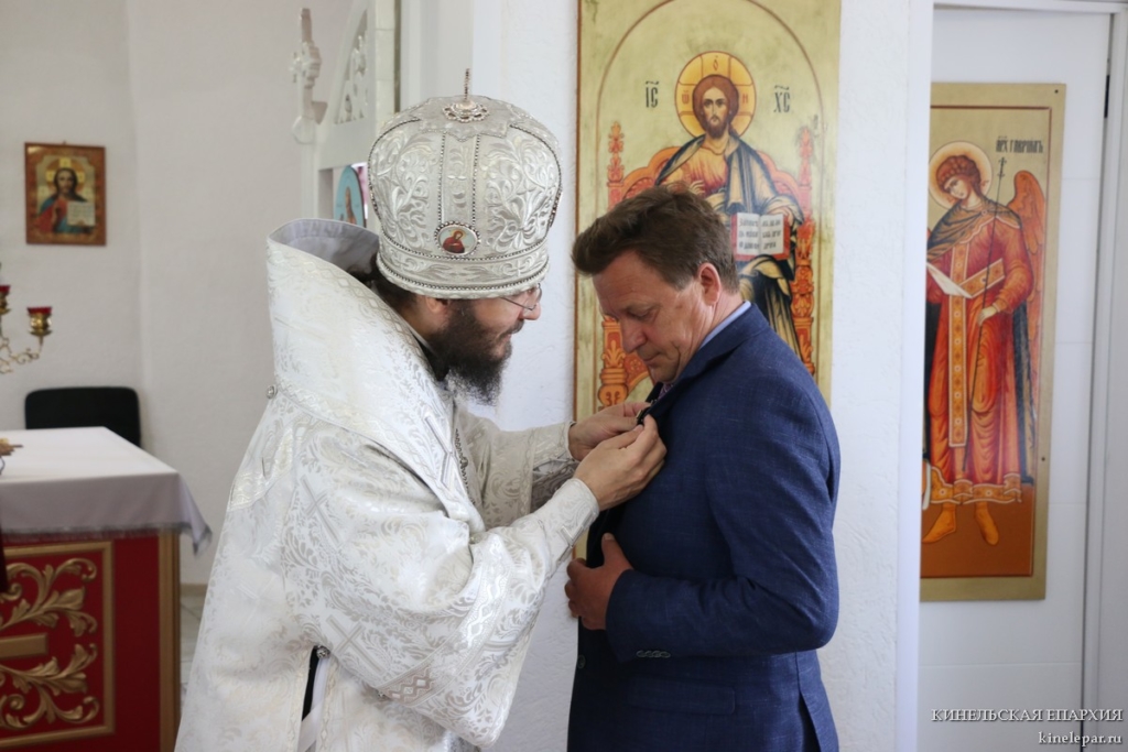Почетным знаком Кинельской епархии св.прав. Александра Чагринского были награждены Глава м.р. Пестравский Александр Любаев и благотворитель храма.