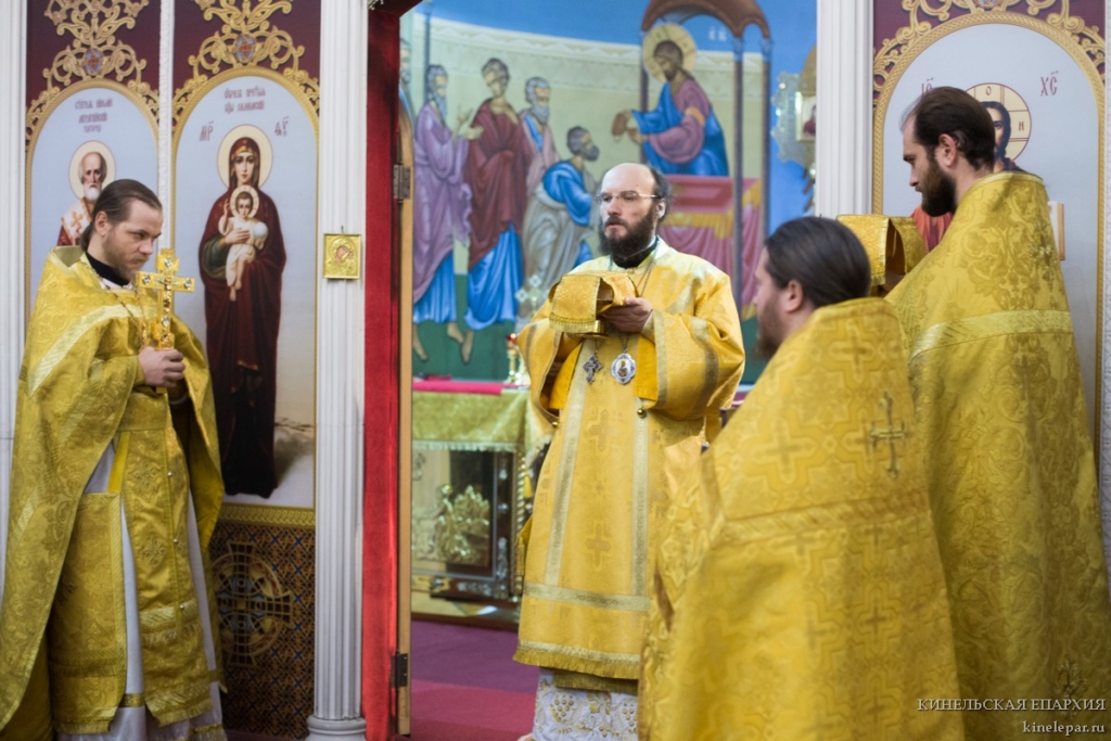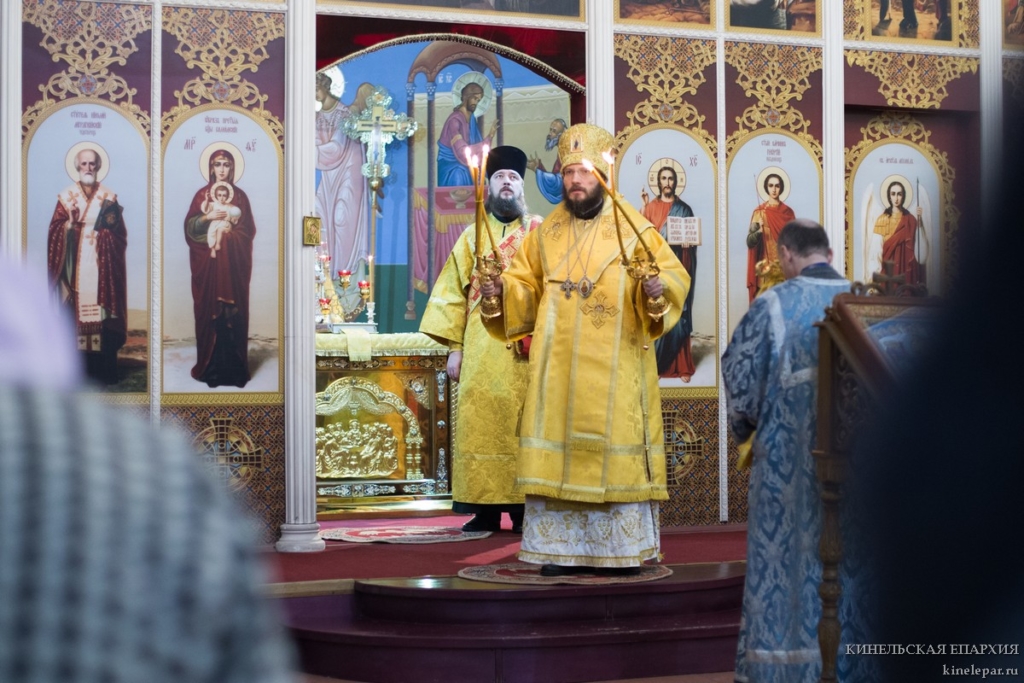 В Неделю 29-ю по Пятидесятнице, святых праотец, Преосвященный Софроний, епископ Кинельский и Безенчукский, совершил Божественную литургию в кафедральном соборе г. Кинеля.