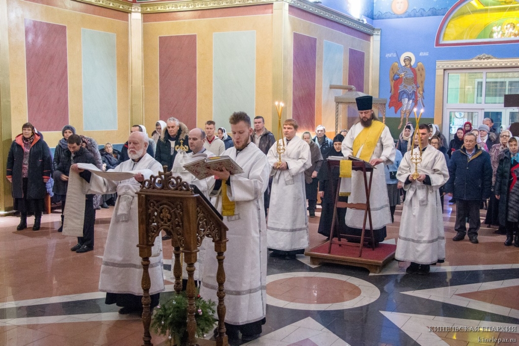 Утром 6 января 2018 года, в навечерие Рождества Христова (Рождественский сочельник), Преосвященный Софроний, епископ Кинельский и Безенчукский, совершил Божественную литургию и великую вечерню в кафедральном соборе г. Кинеля.
