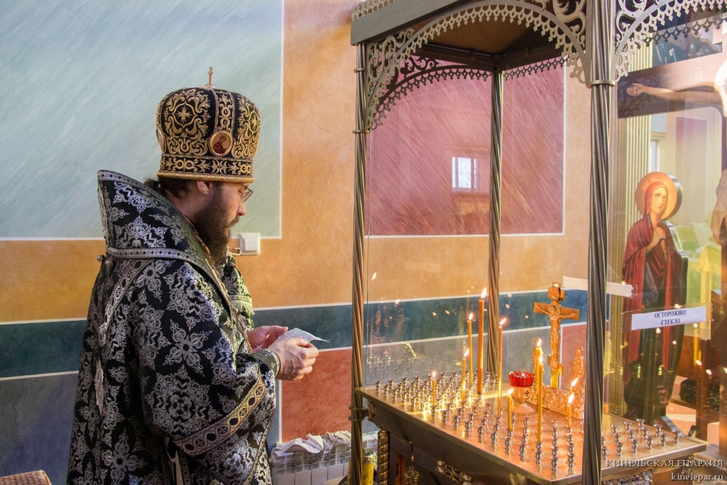 В среду четвертой седмицы Великого поста Преосвященный Софроний, епископ Кинельский и Безенчукский, совершил Литургию Преждеосвященных Даров в кафедральном соборе г. Кинеля. После Литургии была отслужена заупокойная лития.