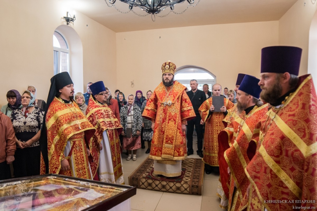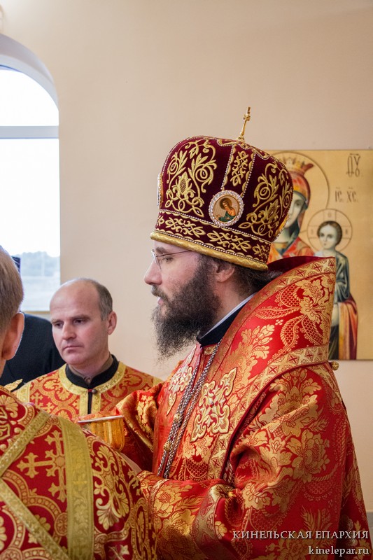 В среду 17-й седмицы по Пятидесятнице, Воспоминание чуда Архистратига Михаила, бывшего в Хонех , Преосвященный Софроний, епископ Кинельский и Безенчукский, совершил Божественную литургию в храме в честь Богоявления Господня с. Екатериновка Приволжского р-на.