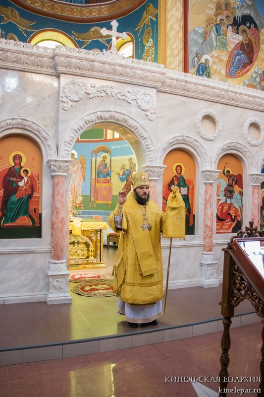 В Неделю 27-ю по Пятидесятнице Преосвященный Софроний, епископ Кинельский и Безенчукский, совершил Божественную литургию в кафедральном соборе г. Кинеля.. Проповедь перед Причастием произнес прот. Димитрий Свербягин.