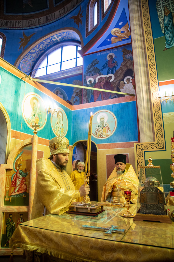 Его Преосвященству сослужили клирики собора.