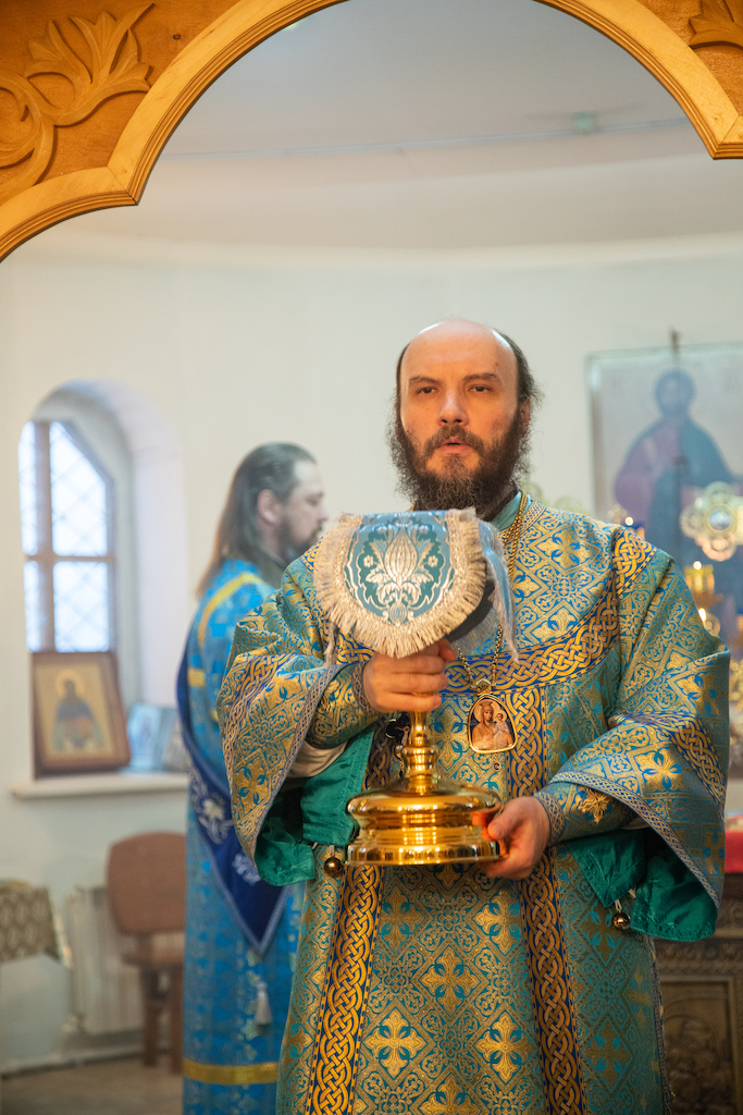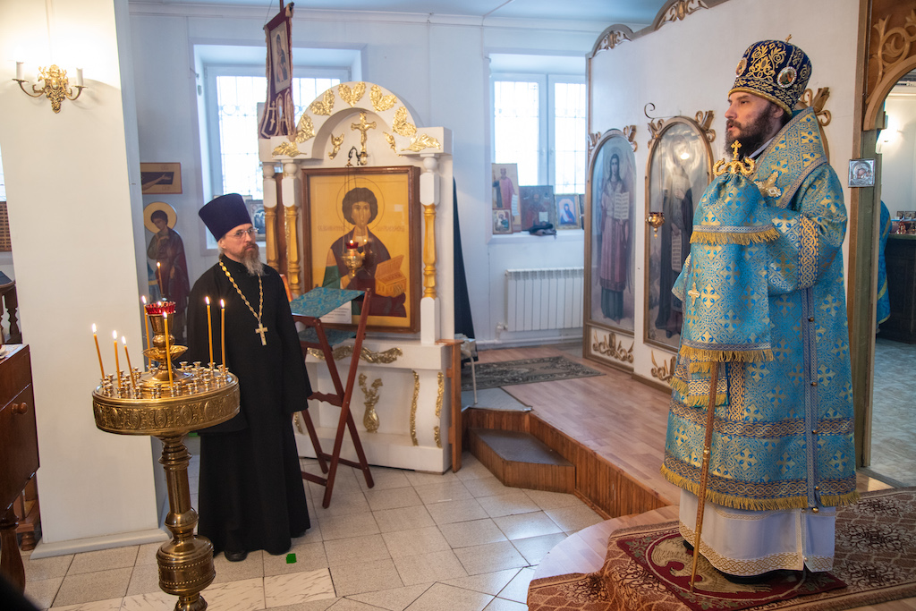 Его преосвященству сослужили прот. Сергий Ворожейкин, секретарь Епархиального управления, иер. Алексий Зудкин, благочинный Приволжского округа, духовенство Кинельской епархии.