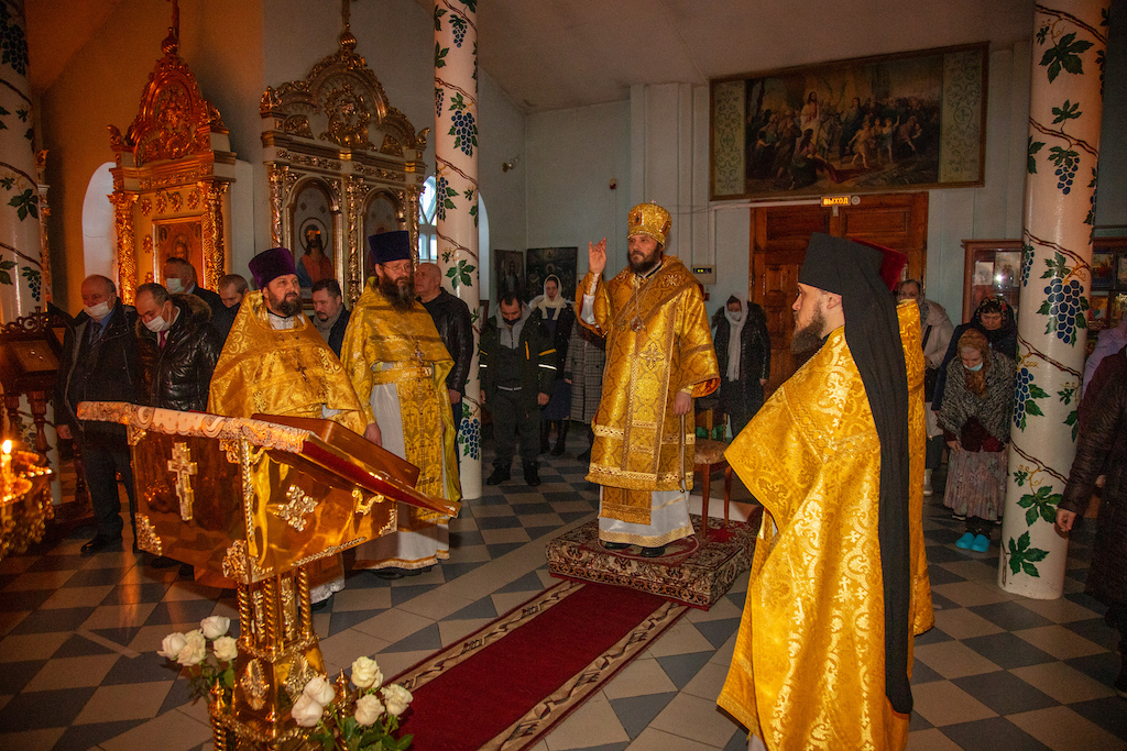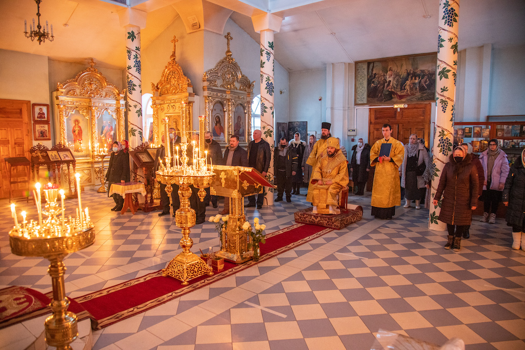 Его Преосвященству сослужили прот. Анатолий Копач, настоятель Троицкого храма с. Утевка, духовенство Кинельской епархии.