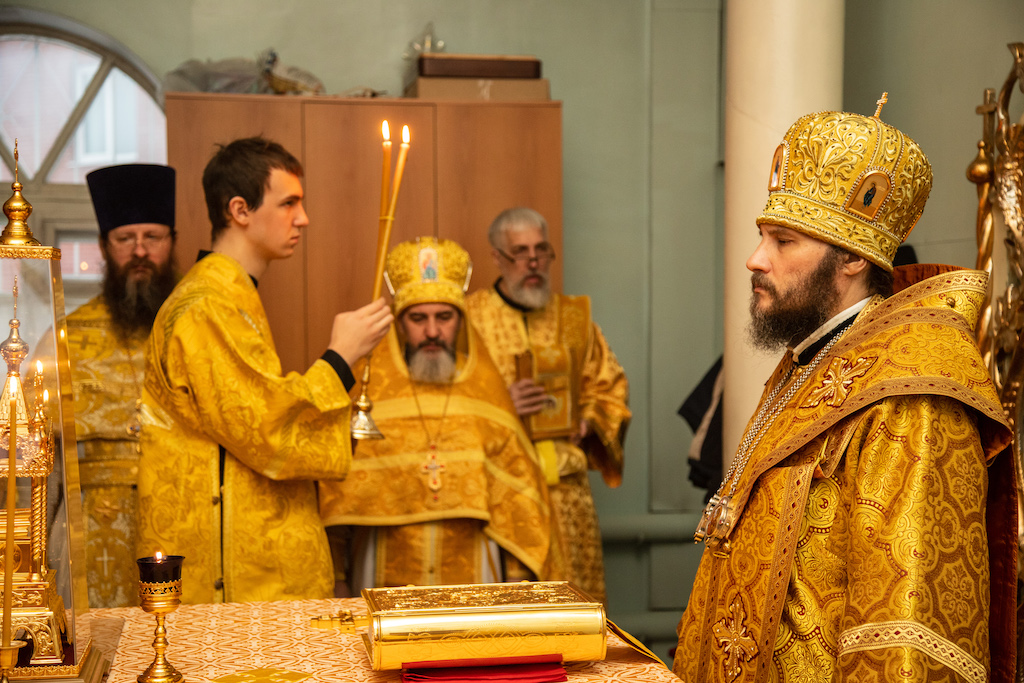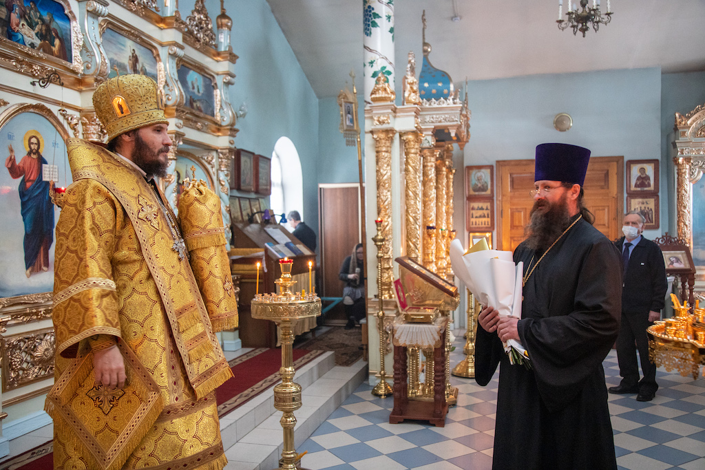 По окончании богослужения прот. Сергий Чураков, настоятель храма, от лица духовенства и прихожан приветствовал епископа Софрония.