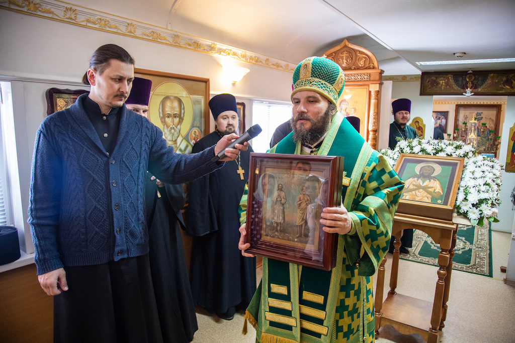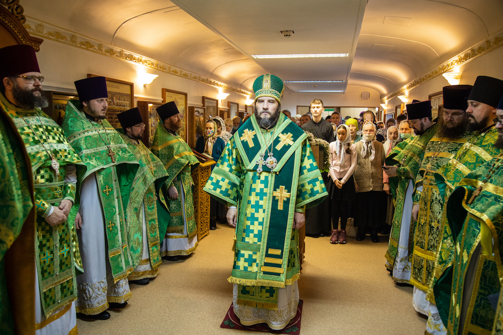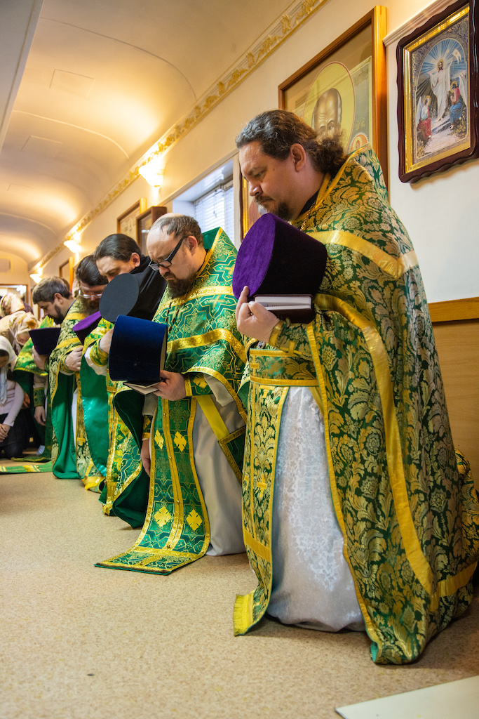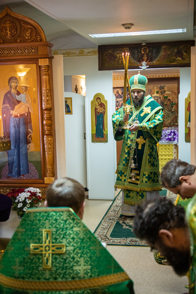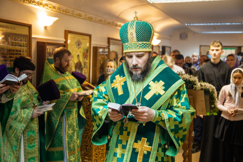 Его Преосвященству сослужили прот. Сергий Воспинников, благочинный Южного Кинельского округа, прот. Максим Клювиткин, благочинный Северного Кинельского округа, прот. Андрей Кувшинов, благочинный Чапаевского округа, духовенство епархии.