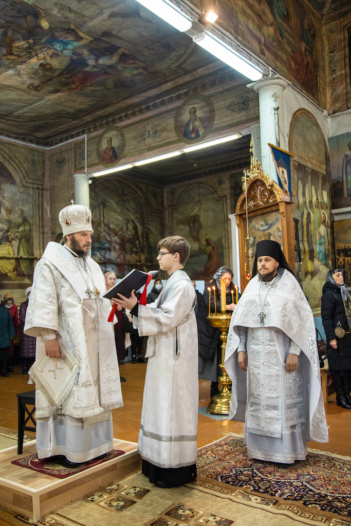 Его Преосвященству сослужили клирики епархии.