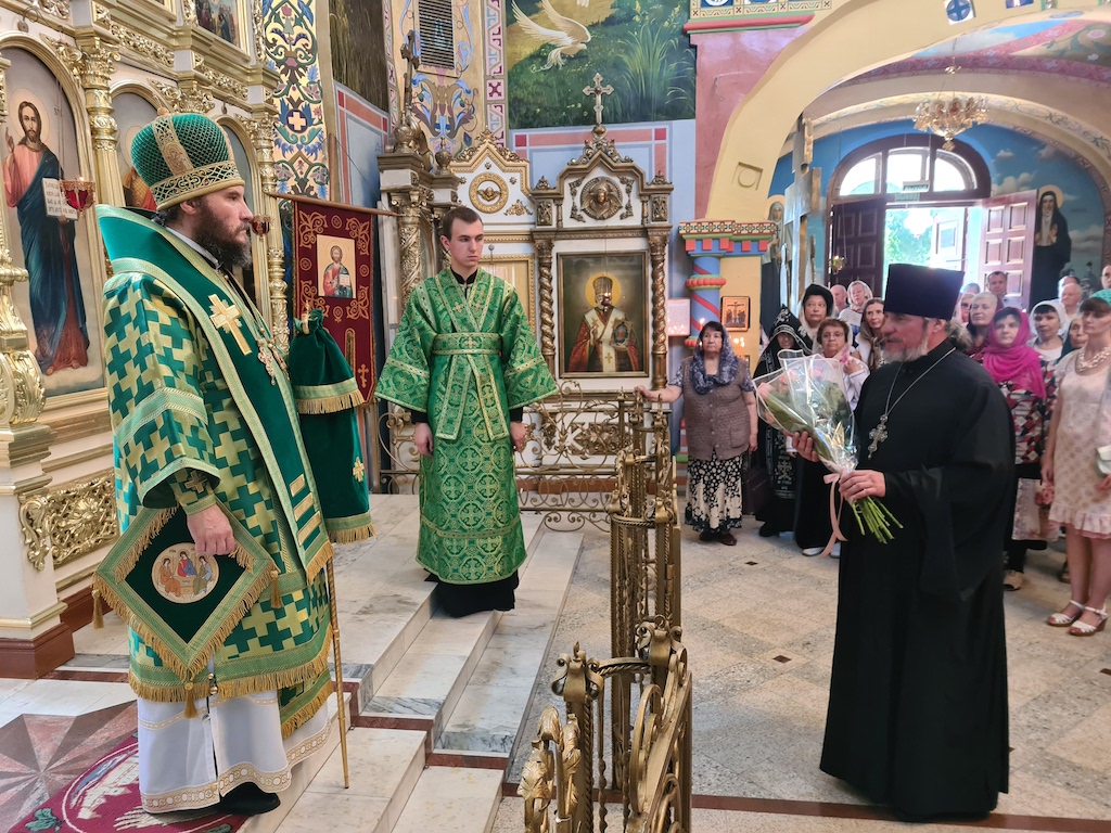 После богослужения прот. Сергий Ворожейкин от лица духовенства и прихожан приветствовал епископа Софрония.