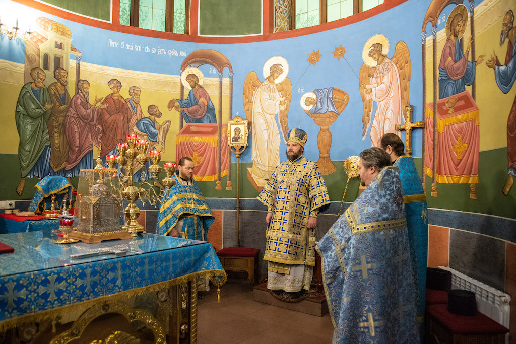 Его Преосвященству сослужили клирики собора.