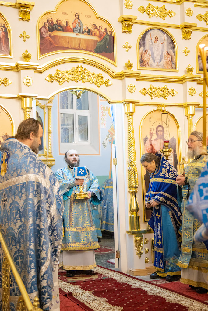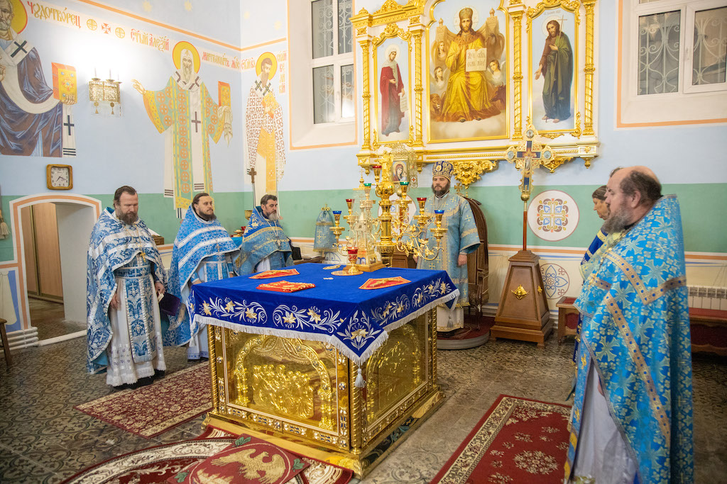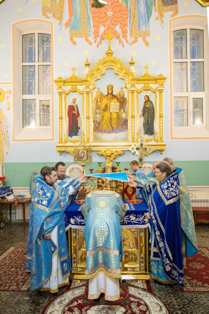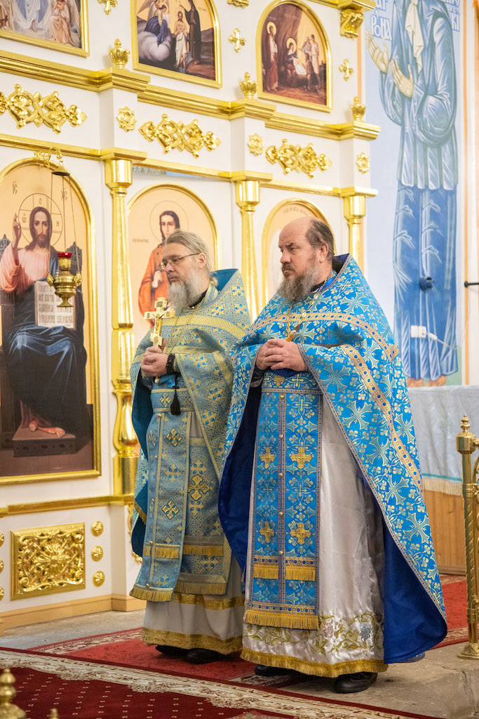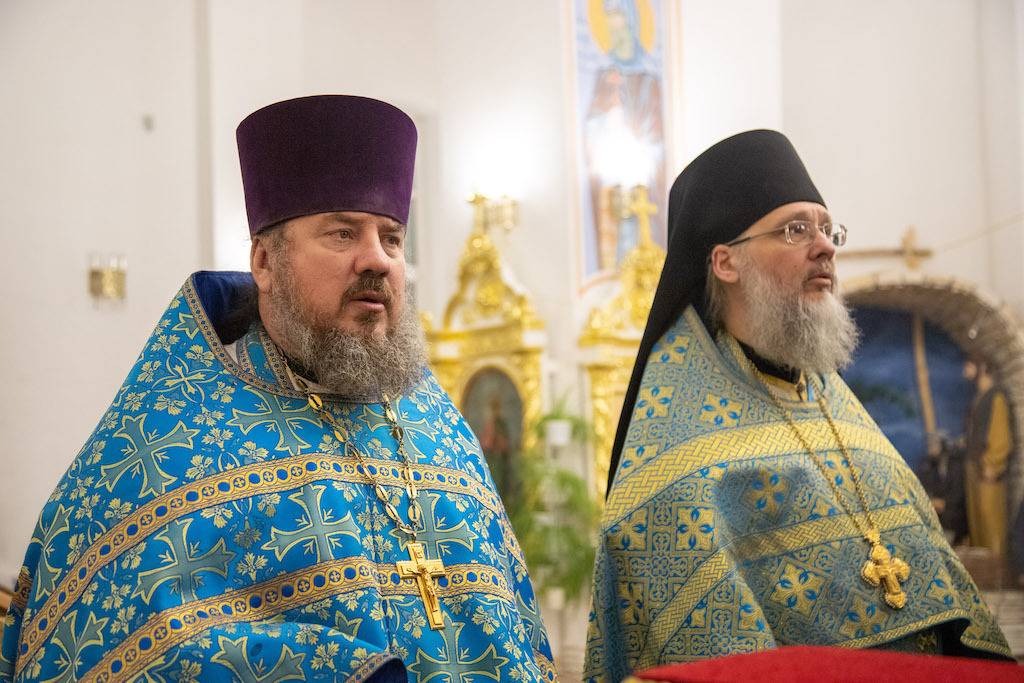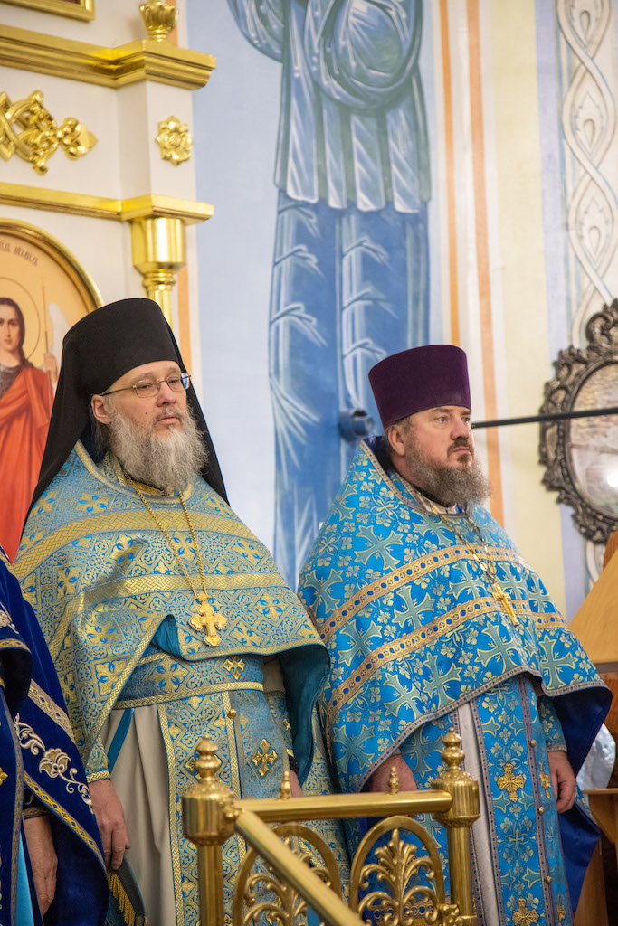Его Преосвященству сослужили игум. Николай (Пашков), благочинный Богатовского округа, прот. Анатолий Копач, настоятель Троицкого храма с. Утевка, духовенство Кинельской епархии.