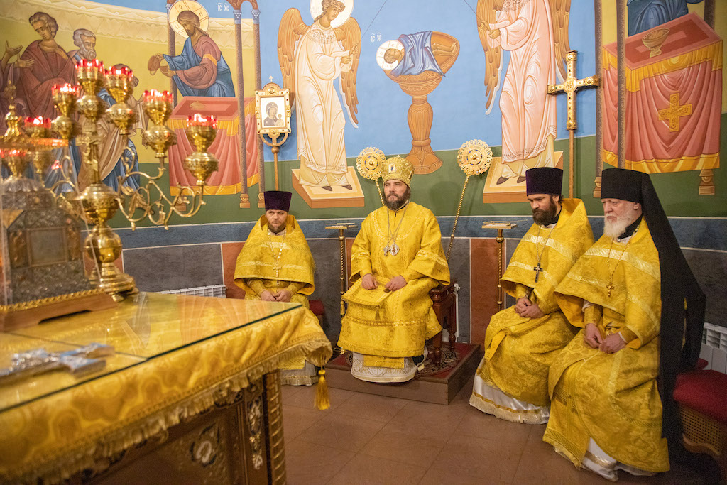 Его Преосвященству сослужили клирики собора.