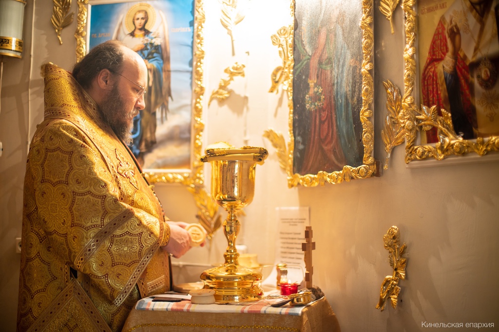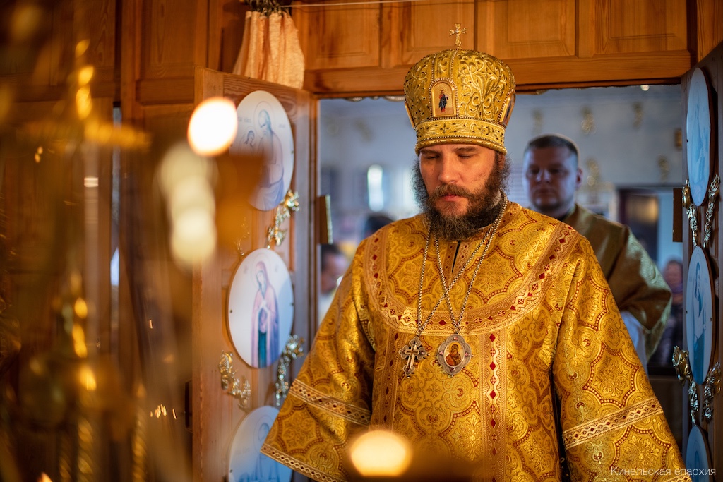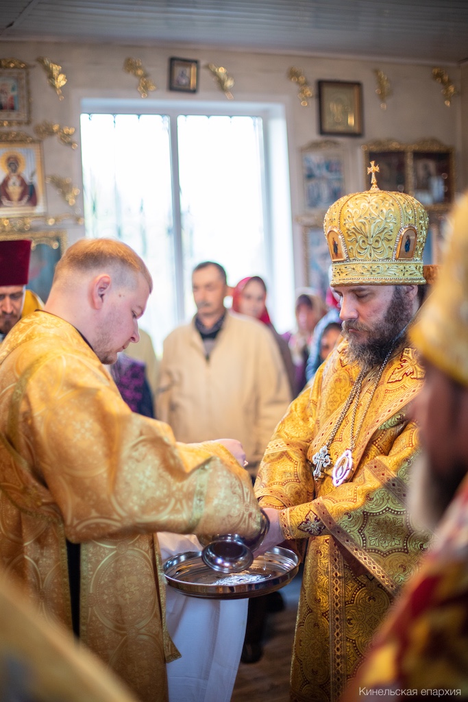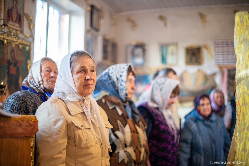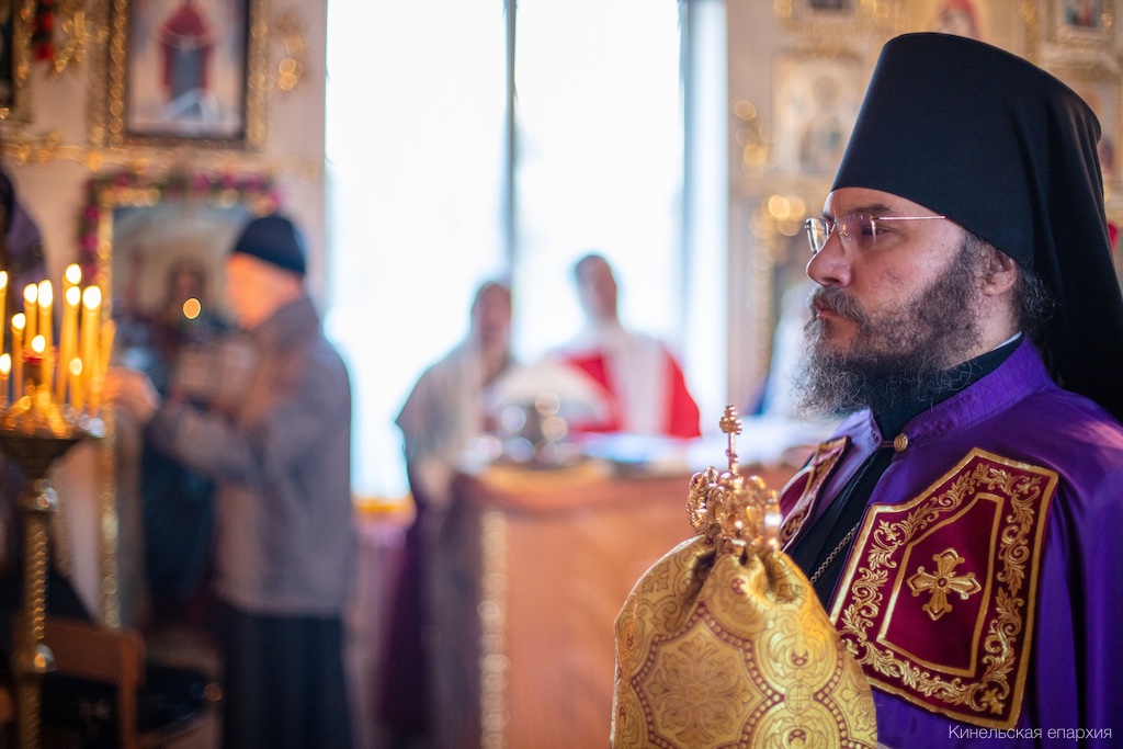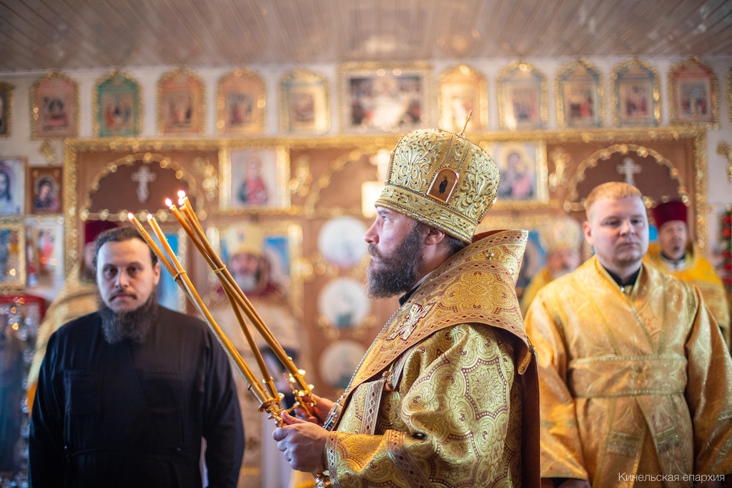 Его Преосвященству сослужили прот. Павел Пушкаренко, благочинный Алексеевского округа, прот. Николай Советкин, благочинный Нефтегорского округа, прот. Анатолий Копач, настоятель Троицкого храма с. Утевка, духовенство Кинельской епархии.