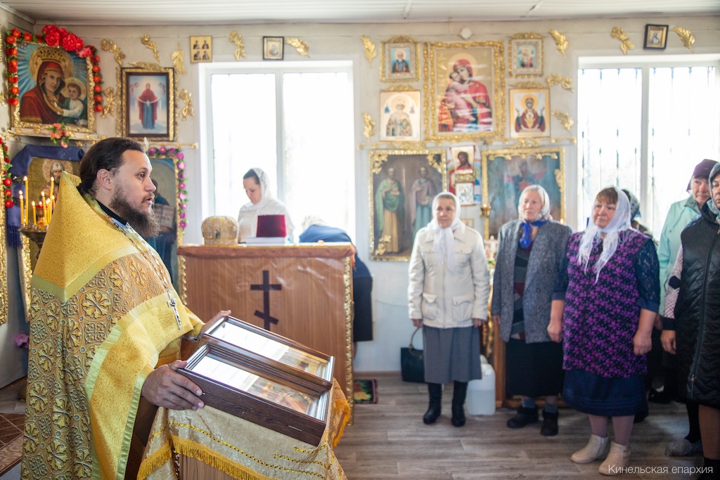 В понедельник 19-й седмицы по Пятидесятнице, память апостола Иоанна Богослова и патриарха Тихона, Преосвященный Софроний, епископ Кинельский и Безенчукский, совершил Божественную литургию в храме Покрова Пресвятой Богородицы с. Герасимовка.
