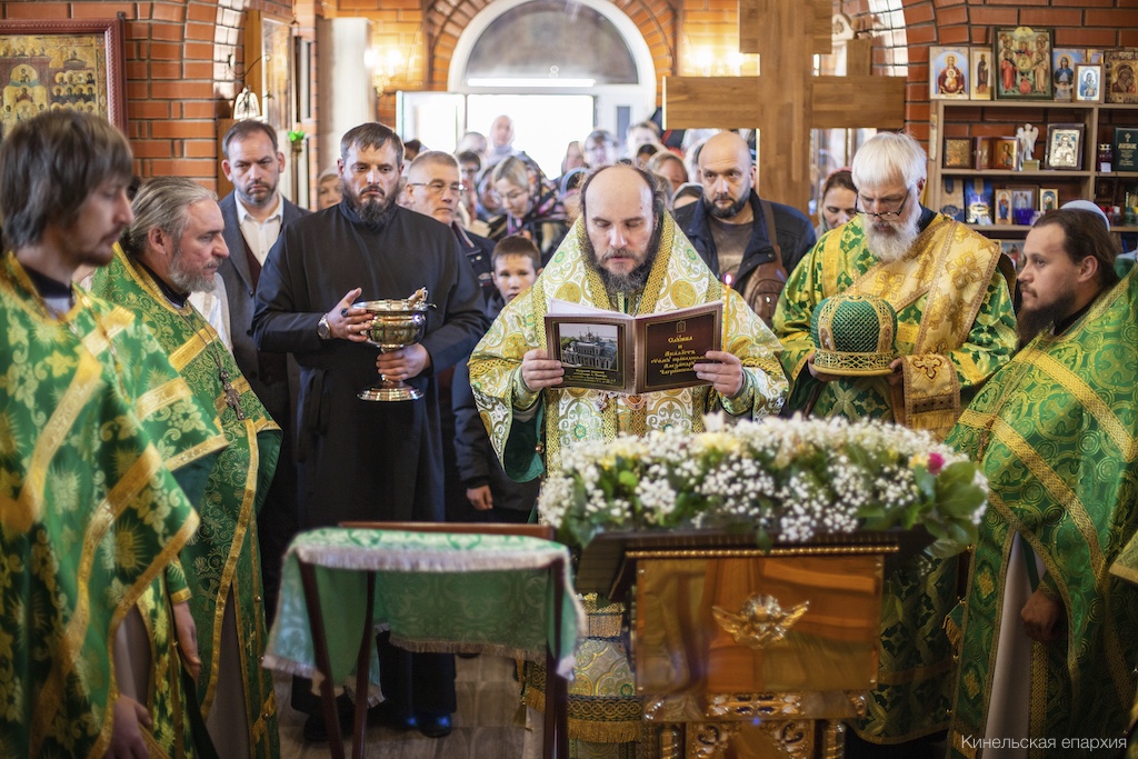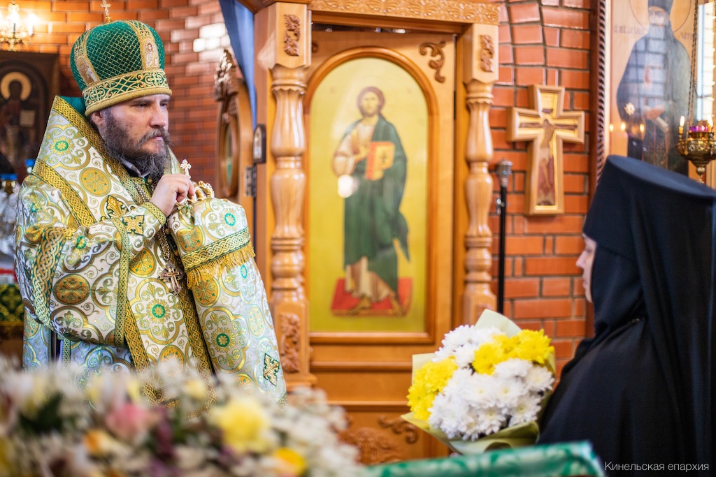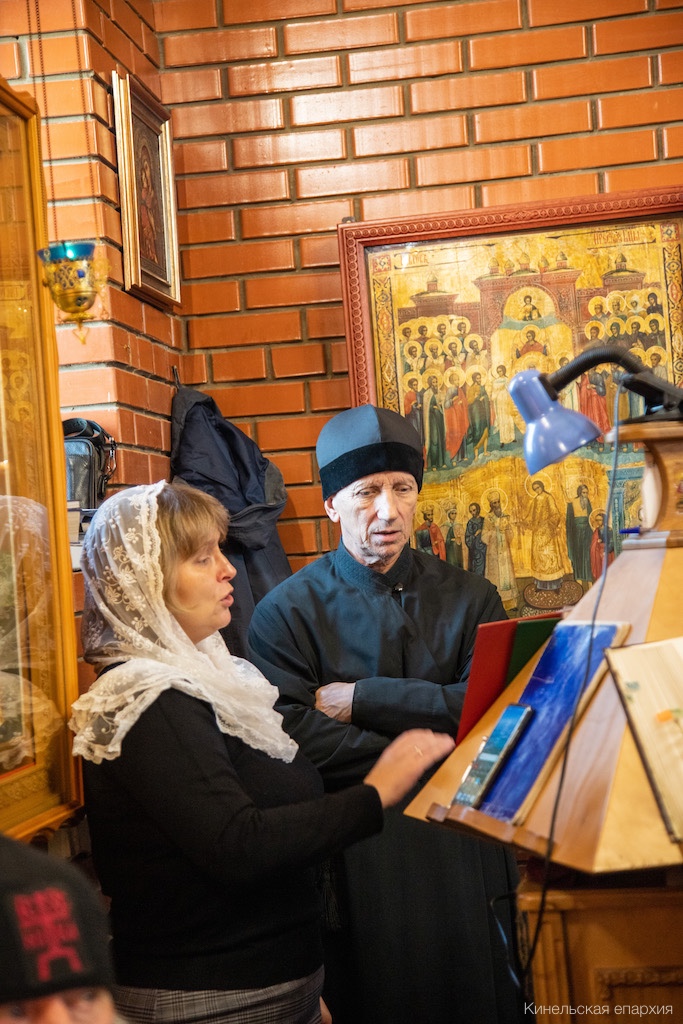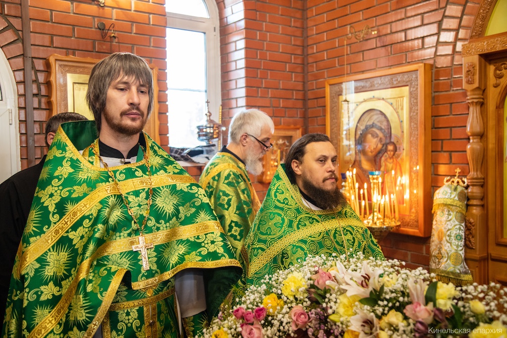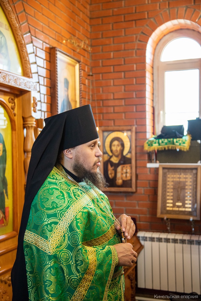 Его Преосвященству сослужили прот. Сергий Ворожейкин, секретарь Епархиального управления, духовенство Кинельской епархии.