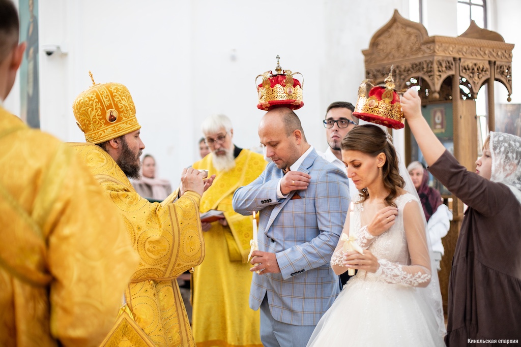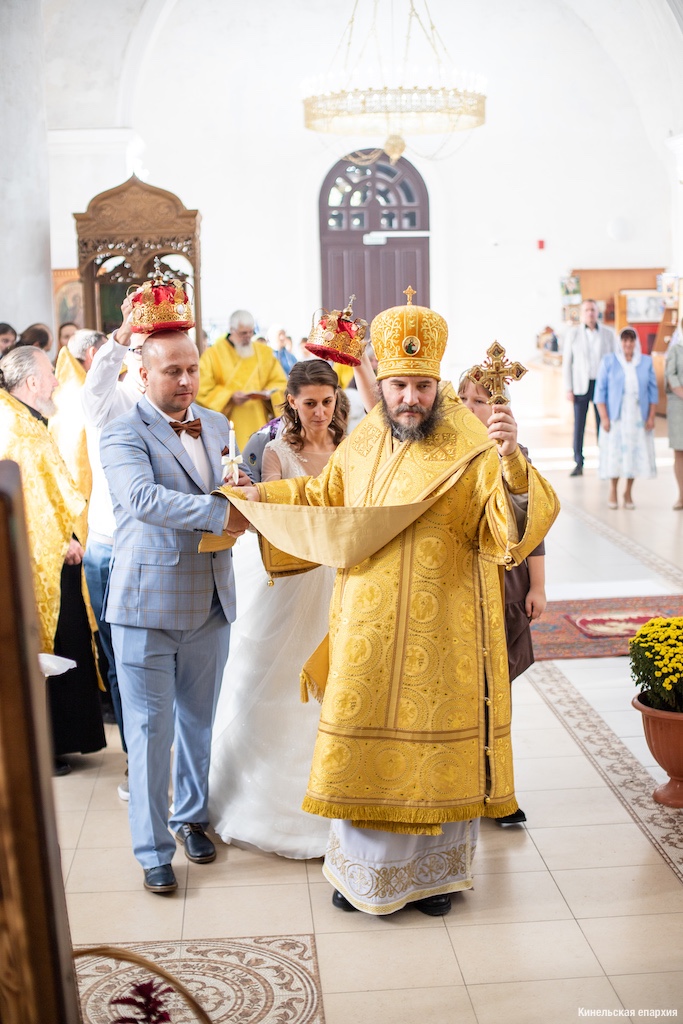 Затем преосвященный владыка совершил в храме Таинство Венчания.