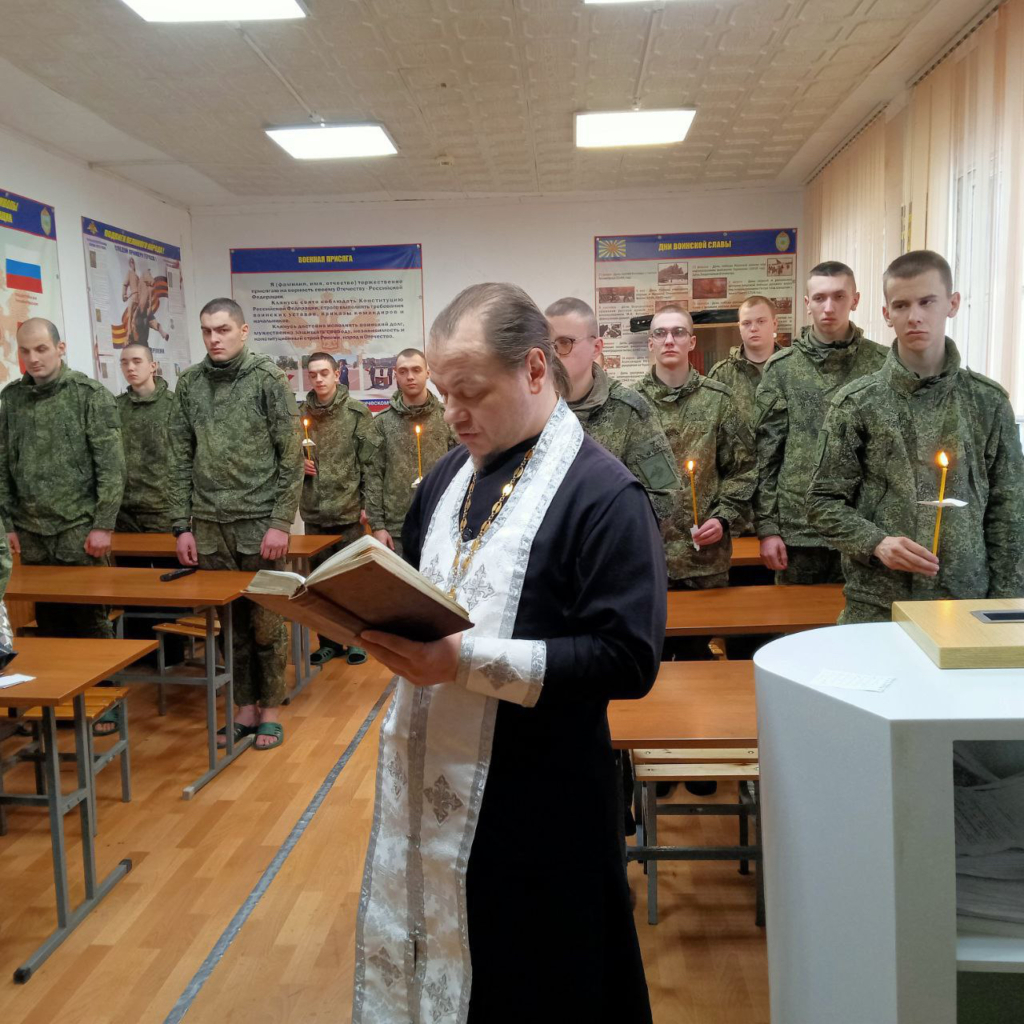 Клирик кафедрального собора г. Кинеля иерей Сергий Баращенко обратился к воинам с пастырским словом, рассказал о духовном смысле праздника, совершил молебен и передал им подарки от Кинельской епархии.
