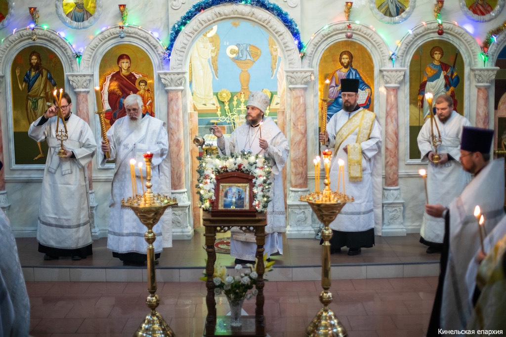 В Неделю 32-ю по Пятидесятнице, канун Праздника Крещения Господня, Преосвященный Софроний, епископ Кинельский и Безенчукский, совершил Всенощное бдение в кафедральном соборе г. Кинеля.
