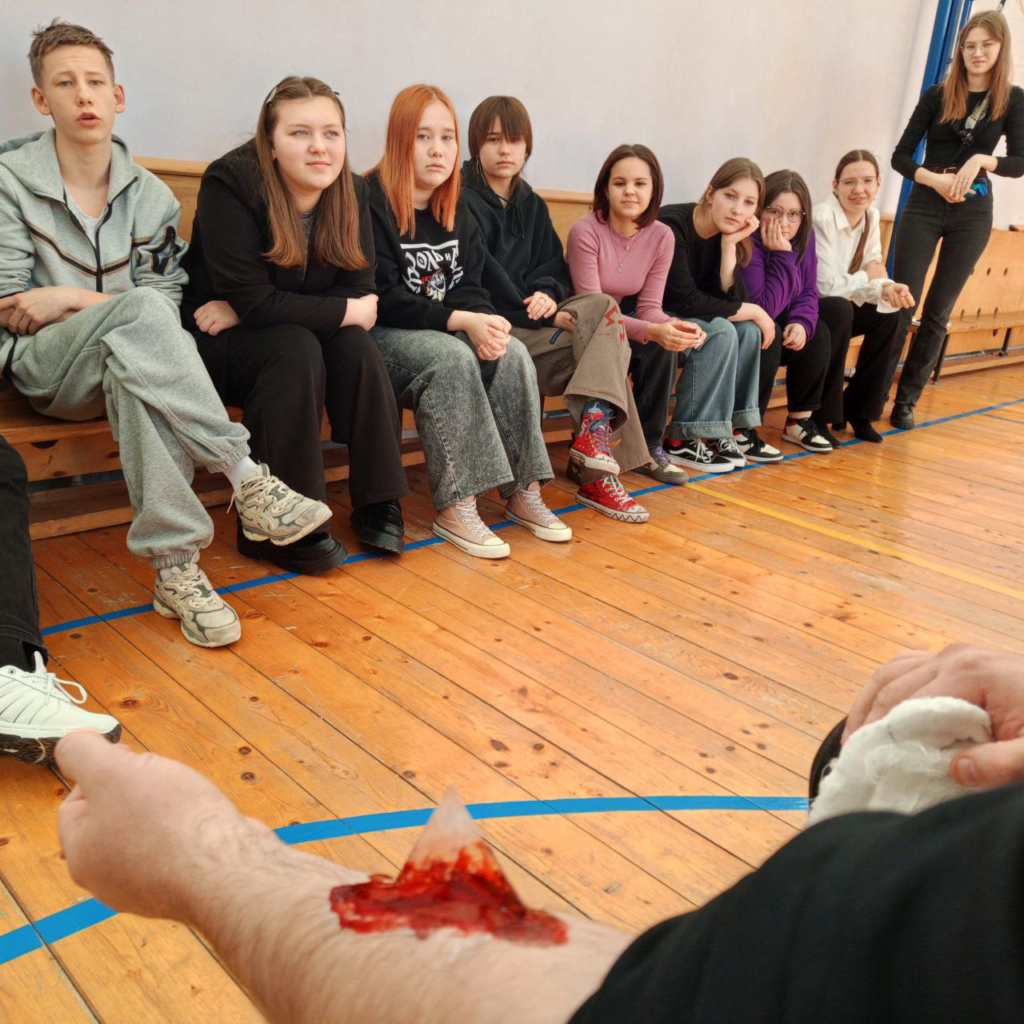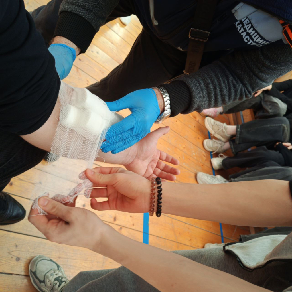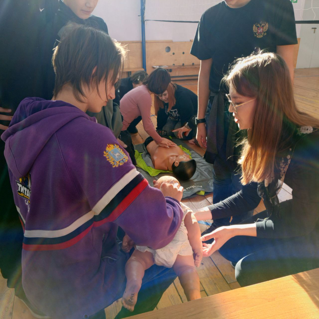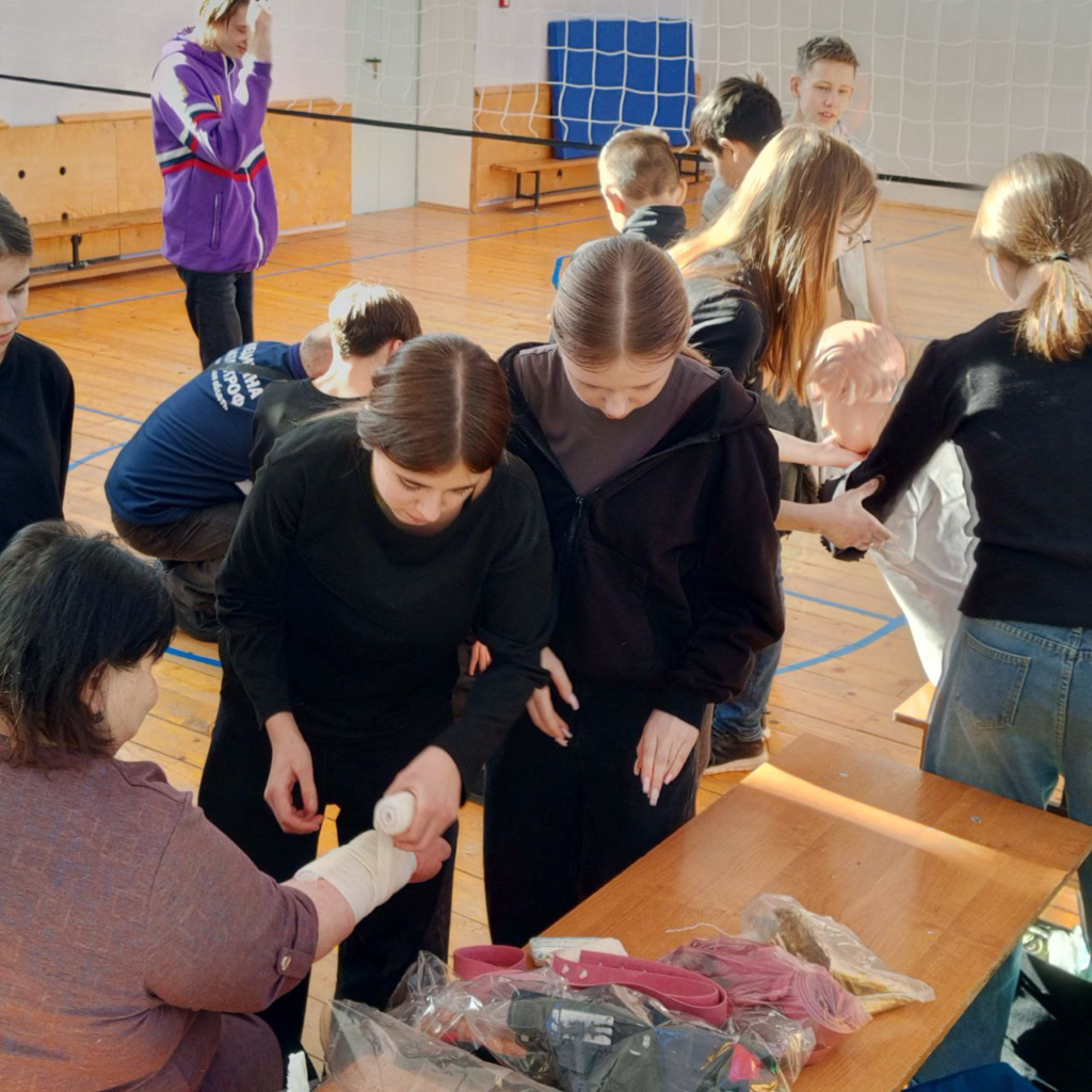 Школьники освоили ключевые навыки первой доврачебной помощи: научились определять признаки жизни, переводить пострадавшего в устойчивое боковое положение, оказывать помощь при обструкции дыхательных путей у взрослых и детей, выполнять базовую сердечно-лёгочную реанимацию, а также накладывать давящую повязку и жгут при кровотечениях.