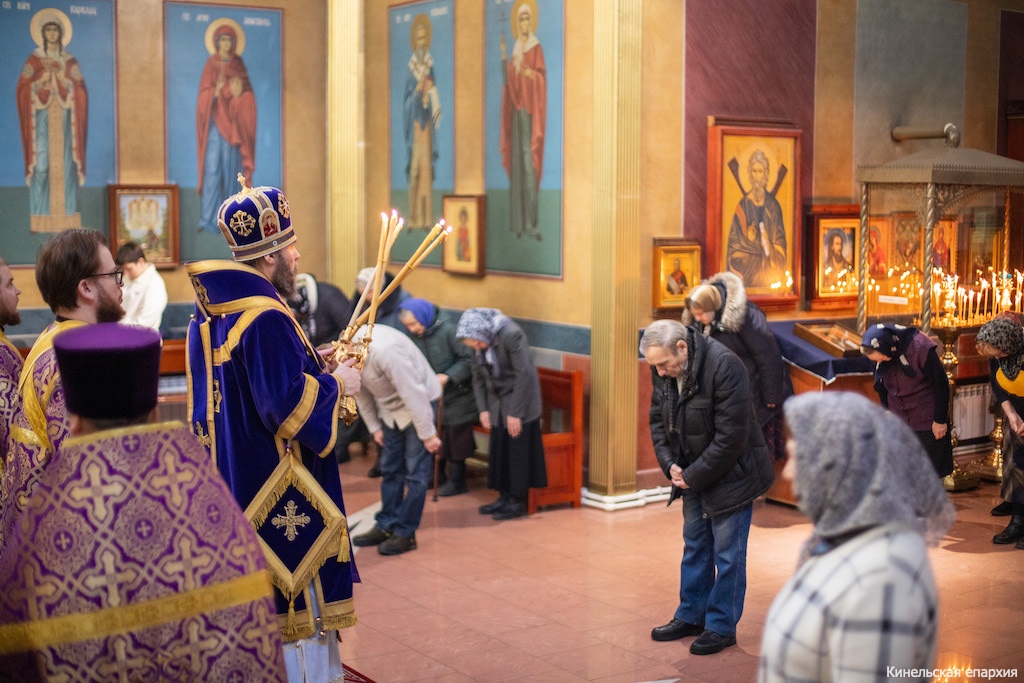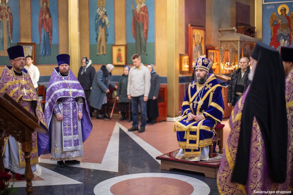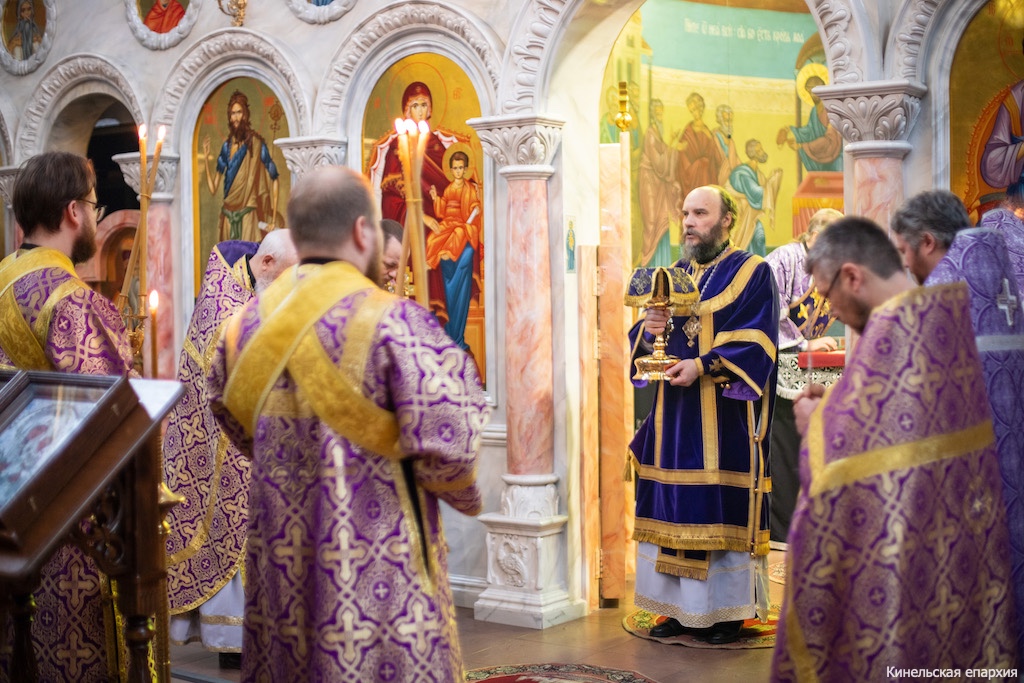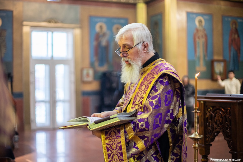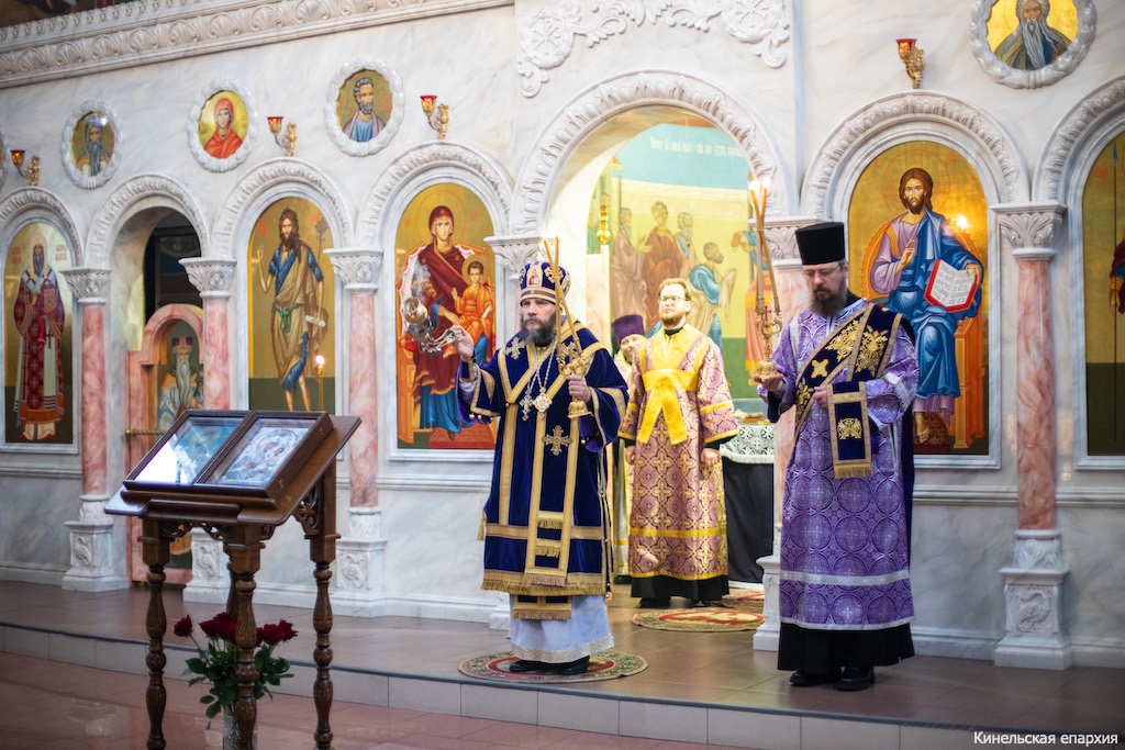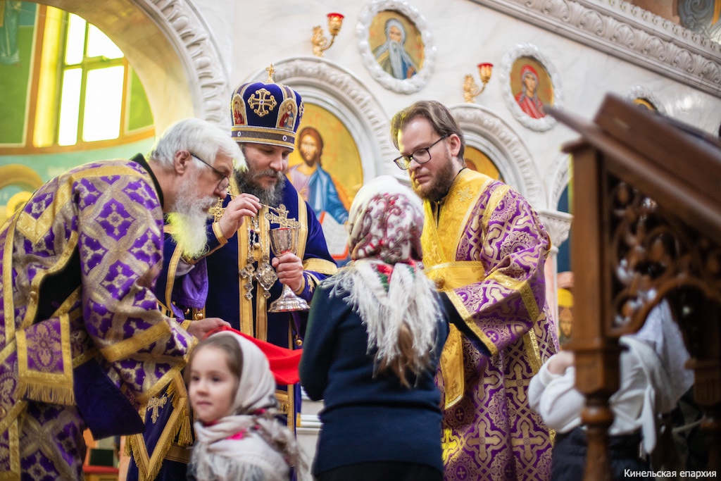 В субботу первой седмицы Великого поста, вмч Феодора Тирона, Преосвященный Софроний, епископ Кинельский и Безенчукский, совершил Божественную литургию в кафедральном соборе г. Кинеля.