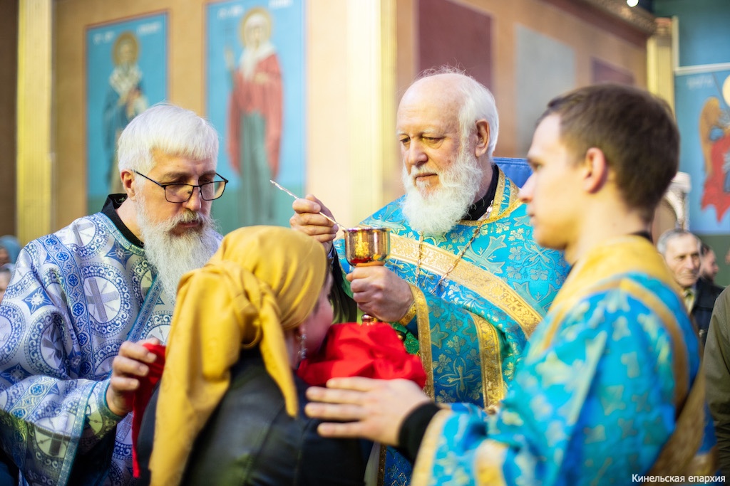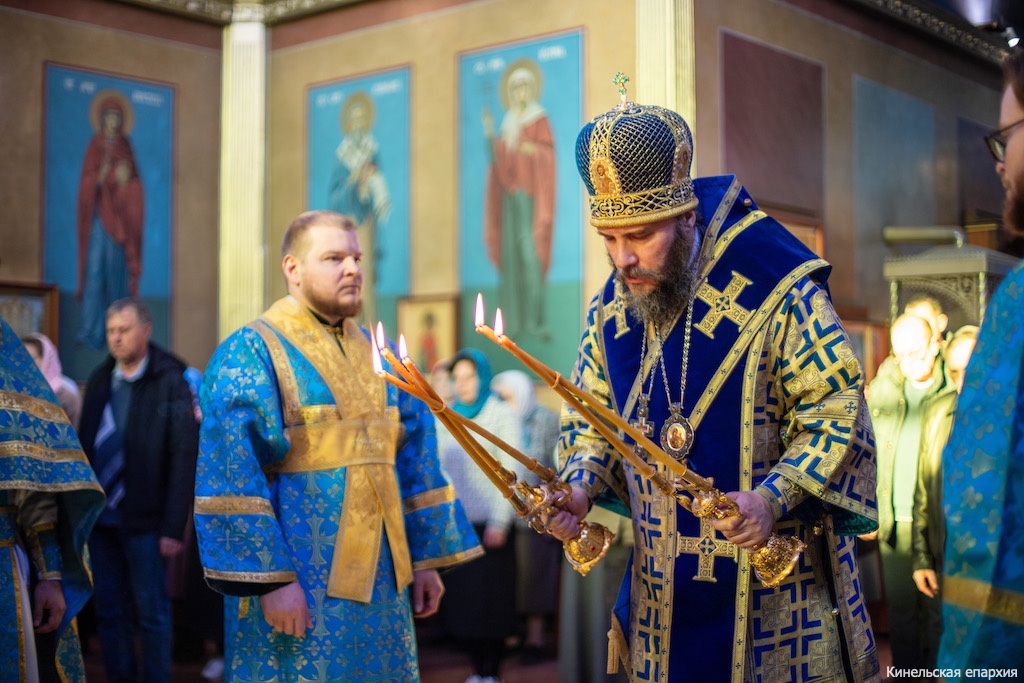 Во вторник Страстной седмицы, Праздник Благовещения Пресвятой Богородицы, Преосвященный Софроний, епископ Кинельский и Безенчукский, совершил Божественную литургию в кафедральном соборе г. Кинеля.
