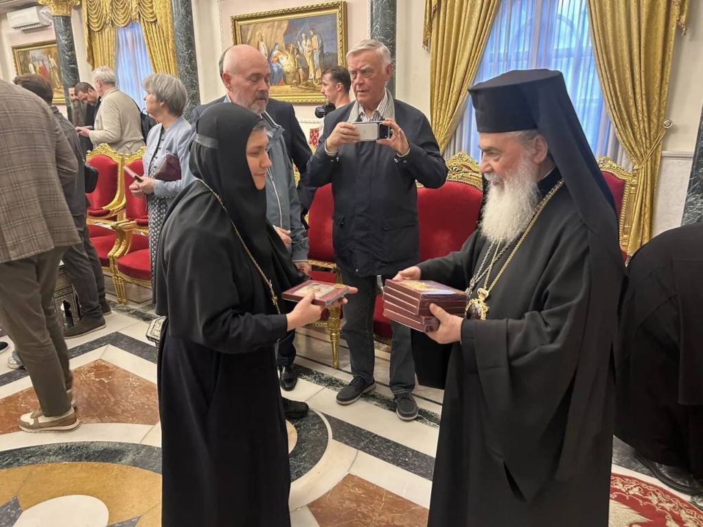 В ходе встречи в Иерусалимской Патриархии участники молились о мире на Святой Земле, после чего Блаженнейший Патриарх благословил паломников образами Иерусалимской Божией Матери.